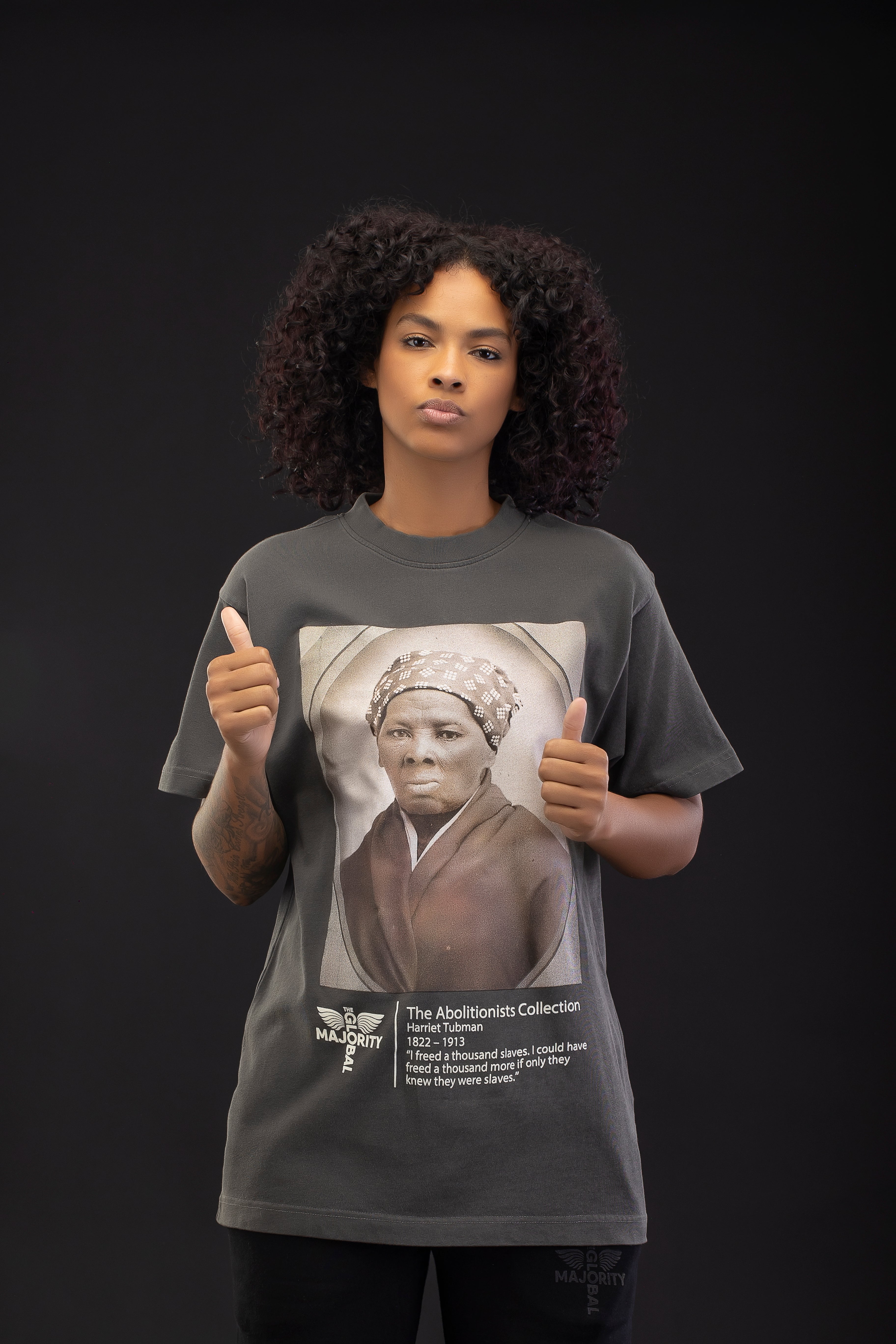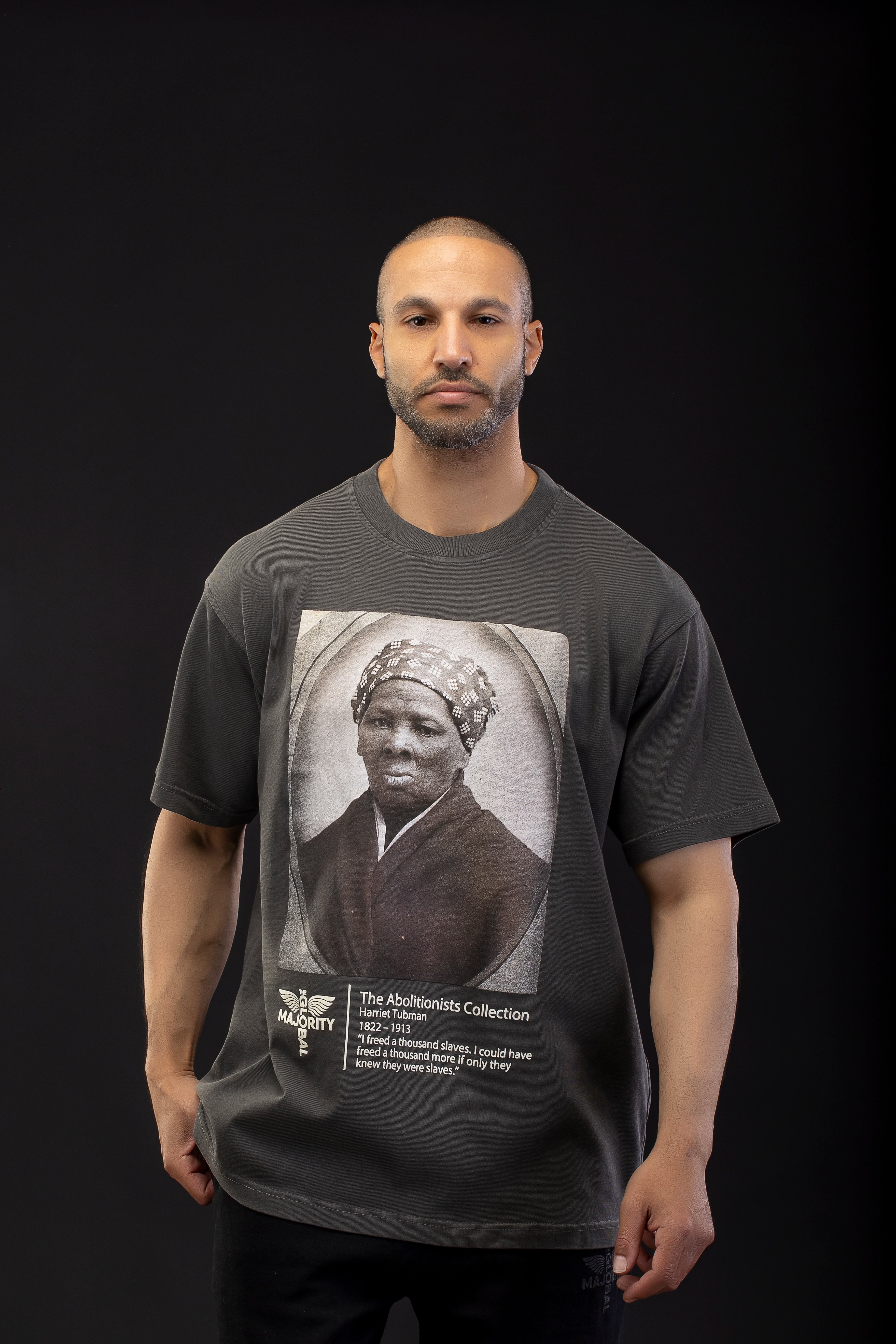 • Front: Showcases the reimagined graphic portrait print of Harriet Tubman